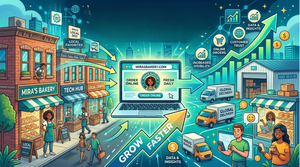 The first step toward growth is visibility. A website acts as your digital storefront, allowing customers to find you anytime, anywhere. Unlike a physical shop with limited hours, your website works 24/7.